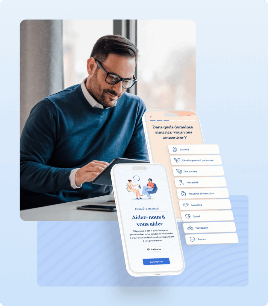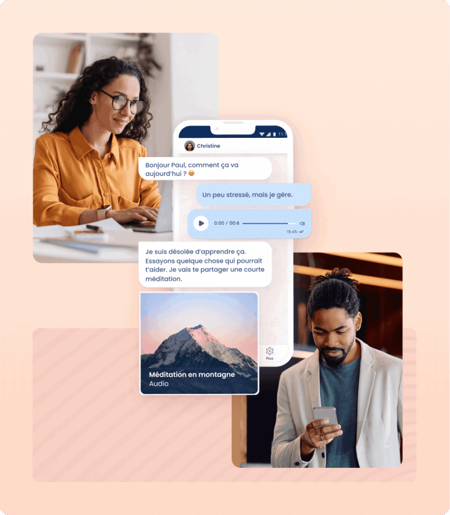 Partenaire stratégique et collaboratif des grandes entreprises, nous soutenons la santé mentale au travail à grande échelle avec une solution dynamique, prête pour l’entreprise.